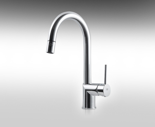 ברז מטבח פרח 90 מעלות, פיה גבוהה מסתובבת, מזלף נשלף כלפי מטה שני מצבי זרימה.